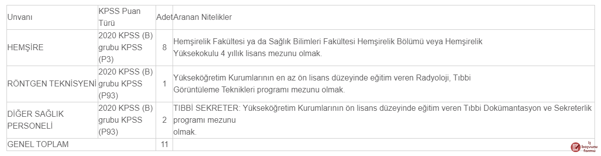 5) Lisans mezunları için 2020 KPSS (B) grubu KPSS(P3) puanı ve ön lisans mezunları için 2020 KPSS (B) grubu KPSS (P93) puanı esas alınacaktır. Hemşire adaylarının 60 (Altmış) ve üzeri puana sahip olması gerekmekte olup diğer pozisyonlar için 2020 KPSS (B) grubu puan sırası esas alınmak suretiyle değerlendirme yapılacaktır.