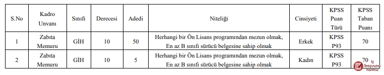 kadrolara açıktan atama yoluyla zabıta memuru alınacaktır.