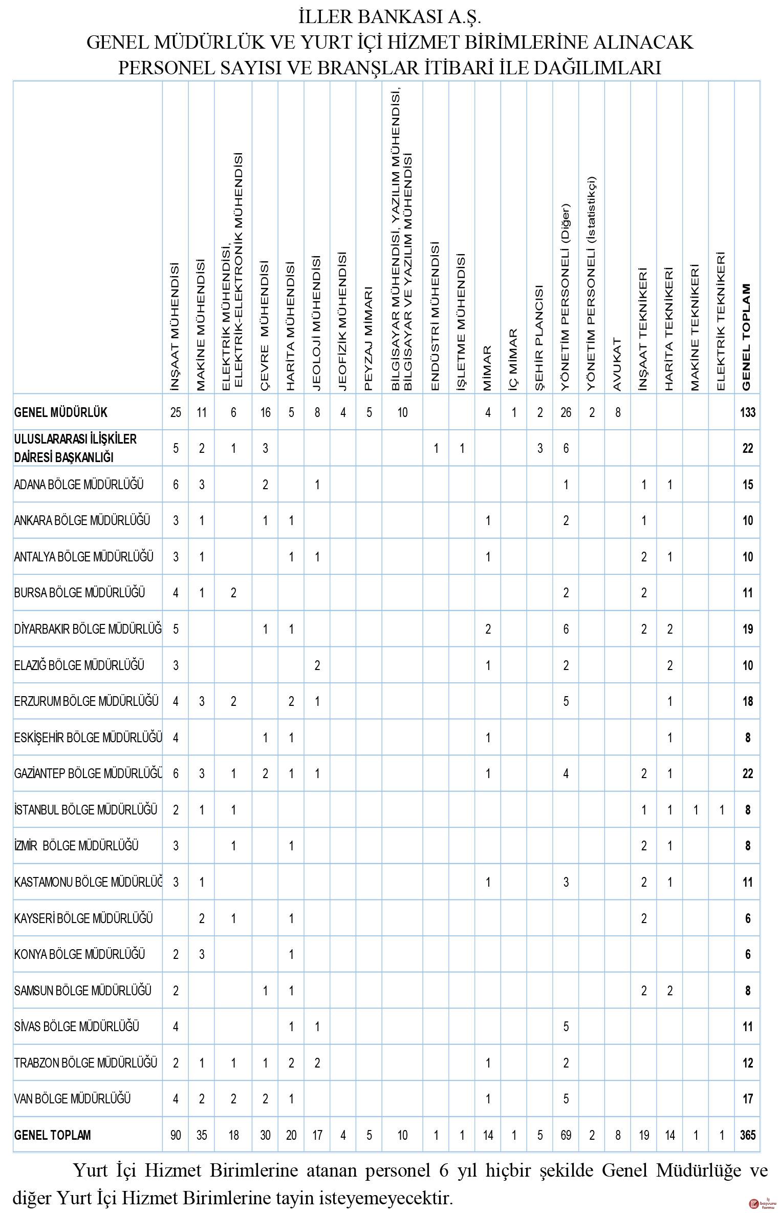olarak çalıştırılmak üzere Mühendis, Mimar, İç Mimar, Şehir Plancısı, Peyzaj Mimarı, Avukat,