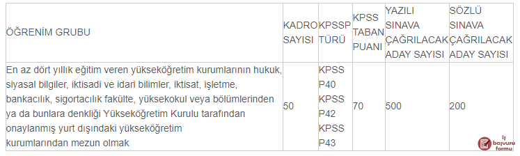 h)  Giriş  sınavına  katılmaya  hak  kazanacak  adayların  tespiti,  başvuran  adayların  KPSS başarı puan sıralamasına göre yapılır.