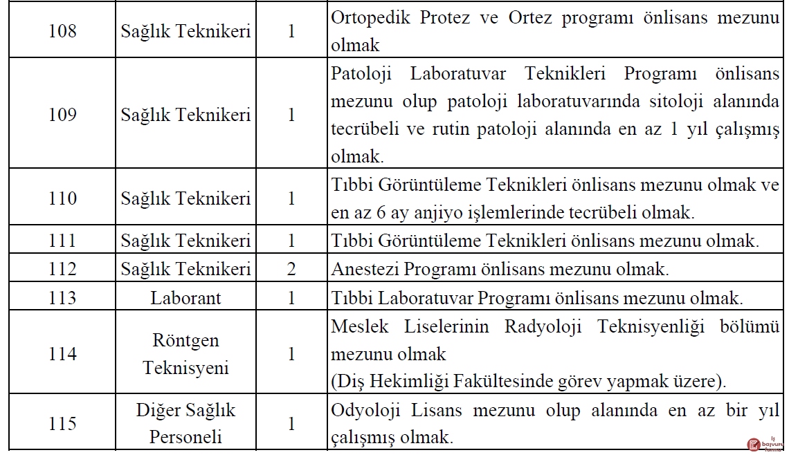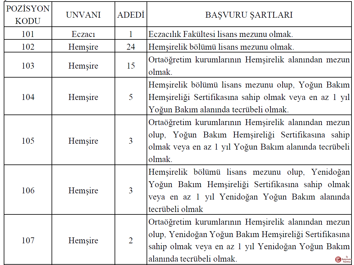 Not: Adaylar sadece tek bir unvan için pozisyon kodu belirterek başvuru yapacaklardır.